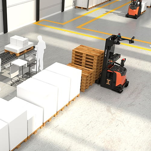 Virtaus: Tuotantolaitoksissa tai varastoissa on aina tarvetta materiaalitäydennyksille. Tämä koskee esimerkiksi osilla lastattuja lavoja, jotka viedään tuotantolinjoille tai poiminta-alueille ja jotka varastoidaan.