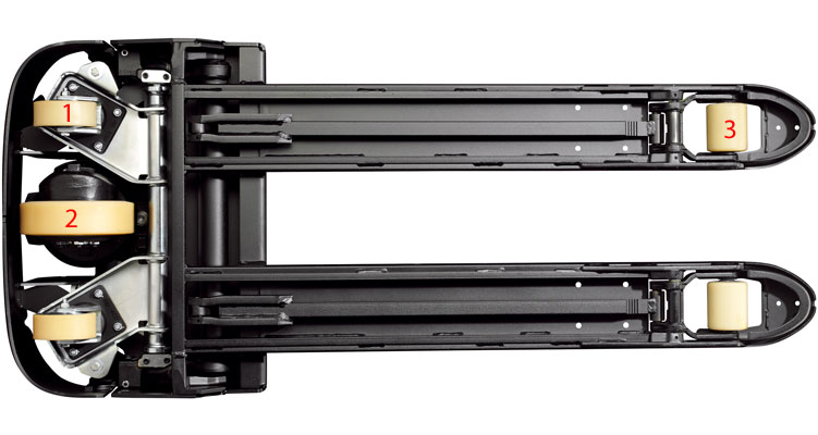 Yksikköpyörät sopivat tasaisille alustoille ja helpottavat kääntymistä. Haarukoiden yksikköpyörät tosin kuluvat nopeammin verrattuna telipyöriin. Yksikköpyörien yhteydessä haarukoiden kärjissä on aina pieni kiipijäpyörä, joka helpottaa kuormalavojen käsittelyä pitkältä sivulta.